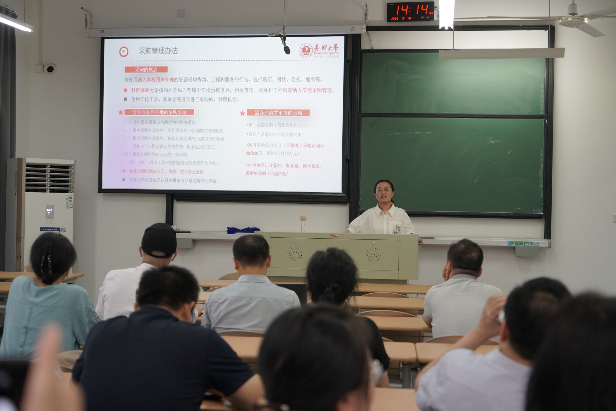 随后,周燕聚焦采购管理工作,全面解读了最新集中采购目录、采购流程及不同采购方式的适用情形。她从项目申报、审批程序到合同签订与履约验收等关键环节进行了条理清晰的讲解,并就如何提高采购效率、规避操作风险提出了专业建议,为规范高效开展采购工作提供了有力指导。