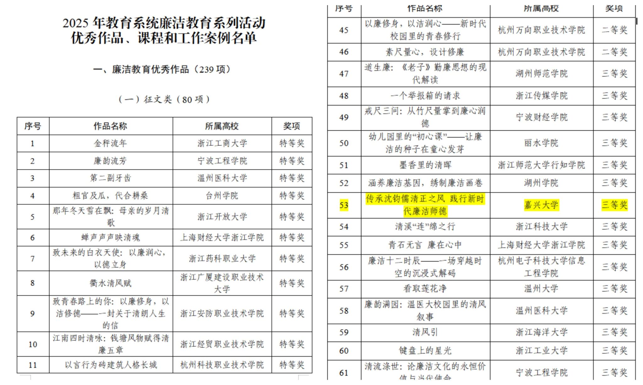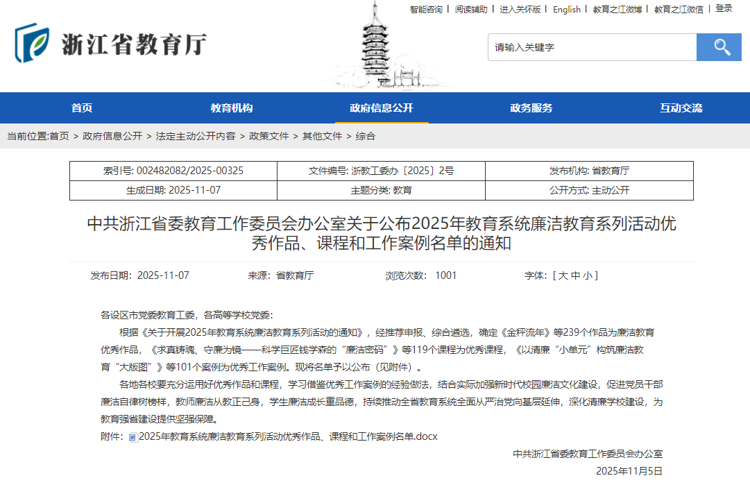 近日,中共浙江省委教育工委公布2025年教育系统廉洁教育系列活动评选结果,嘉兴大学商学院朱海萍老师的作品《传承沈钧儒清正之风 践行新时代廉洁师德》一文,获廉洁教育优秀作品(征文类)三等奖。