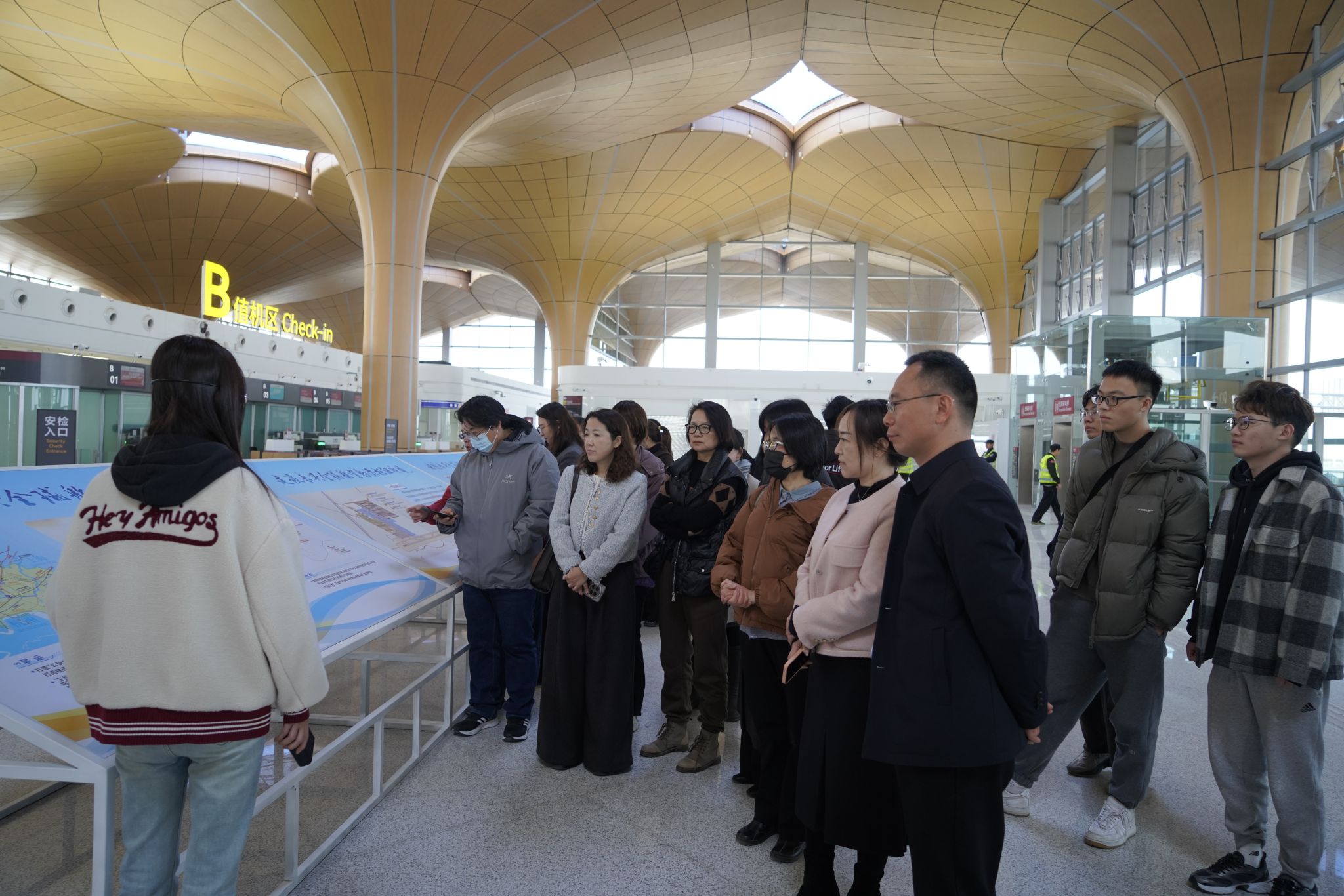 随着参观车辆缓缓驶入嘉兴南湖机场,22 朵寓意 “红船精神” 的 “杜鹃花” 造型幕墙在晨光中熠熠生辉,成为机场最具辨识度的红色标识。走进航站楼主体建筑,工作人员正紧张有序地开展最后的设施调试与环境布置,处处洋溢着冲刺通航的忙碌氛围。在讲解员的引导下,大家依次深入安检通道、候机大厅、值机区域等核心功能区,详细了解机场的整体功能布局、未来运营规划以及在长三角一体化发展战略中的重要定位。通过实地参观与深入交流,大家深刻认识到,嘉兴南湖机场不仅是嘉兴打通空中通道、联通世界的全新窗口,更是主动融入国家战略、助推长三角区域协同发展的关键交通枢纽,生动彰显了嘉兴以实干谋求高质量发展的坚定决心与强劲行动力。