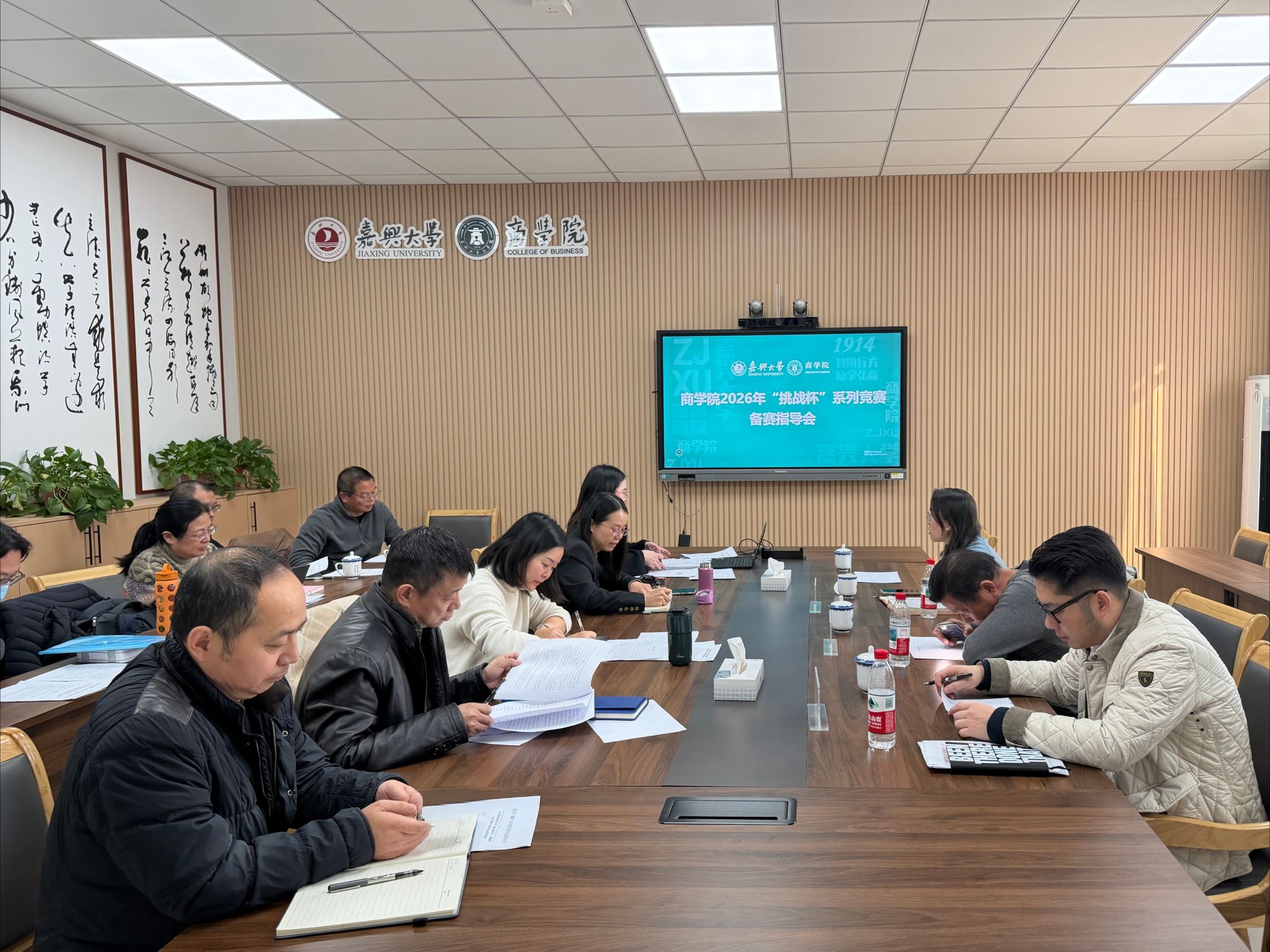 为精准锚定“挑战杯”系列赛事备赛方向,提升项目培育质量与核心竞争力,1月23日下午,校团委书记张婧嫄一行院专项指导“挑战杯”系列赛事筹备工作。商学院党委书记任玉萍、党委副书记潘欣及各项目指导教师代表共同参会。
