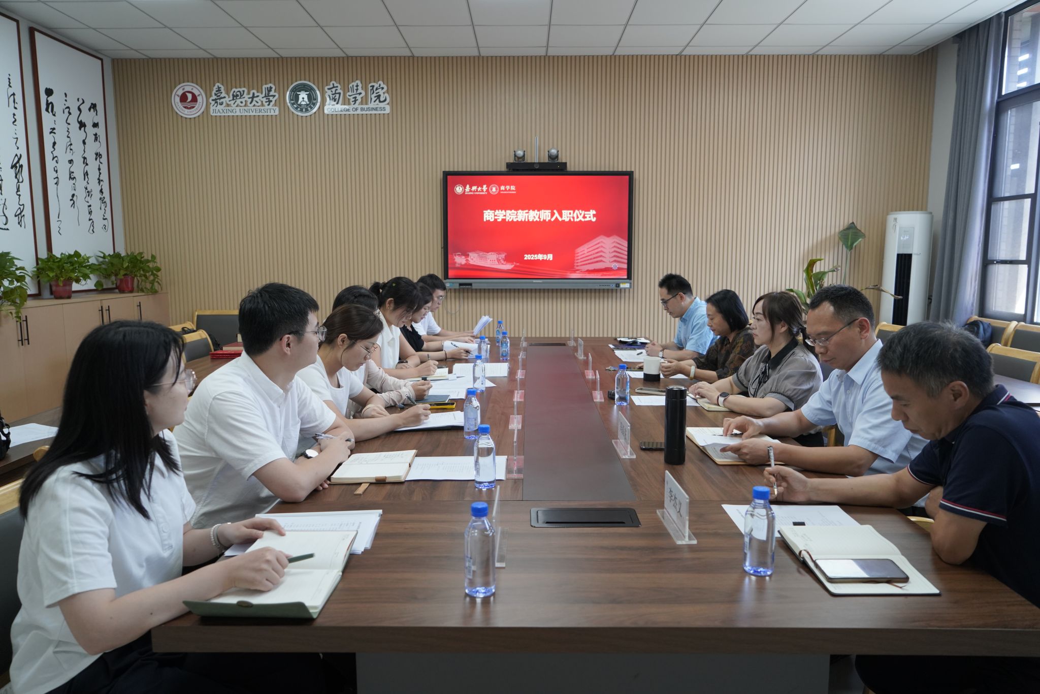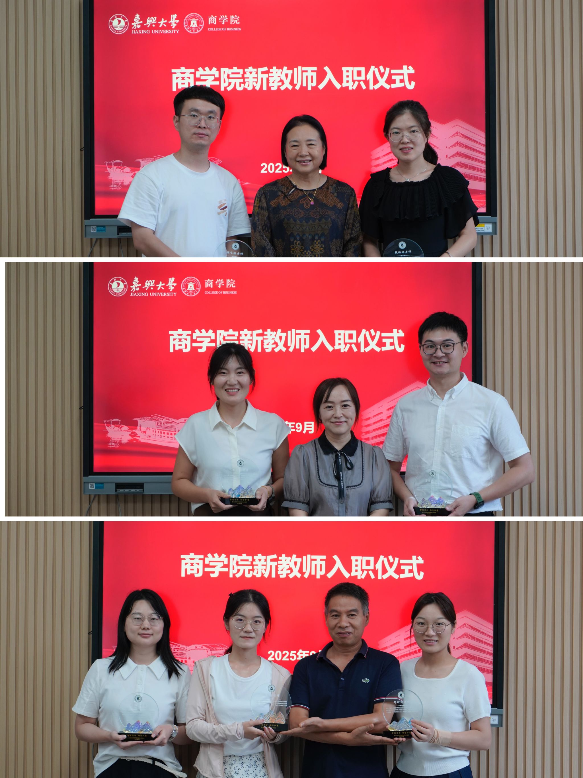 学院向新教师赠送了精心准备的纪念品,承载着学院的殷切期望与美好祝福,象征着新教师正式成为嘉兴大学商学院大家庭的一员。