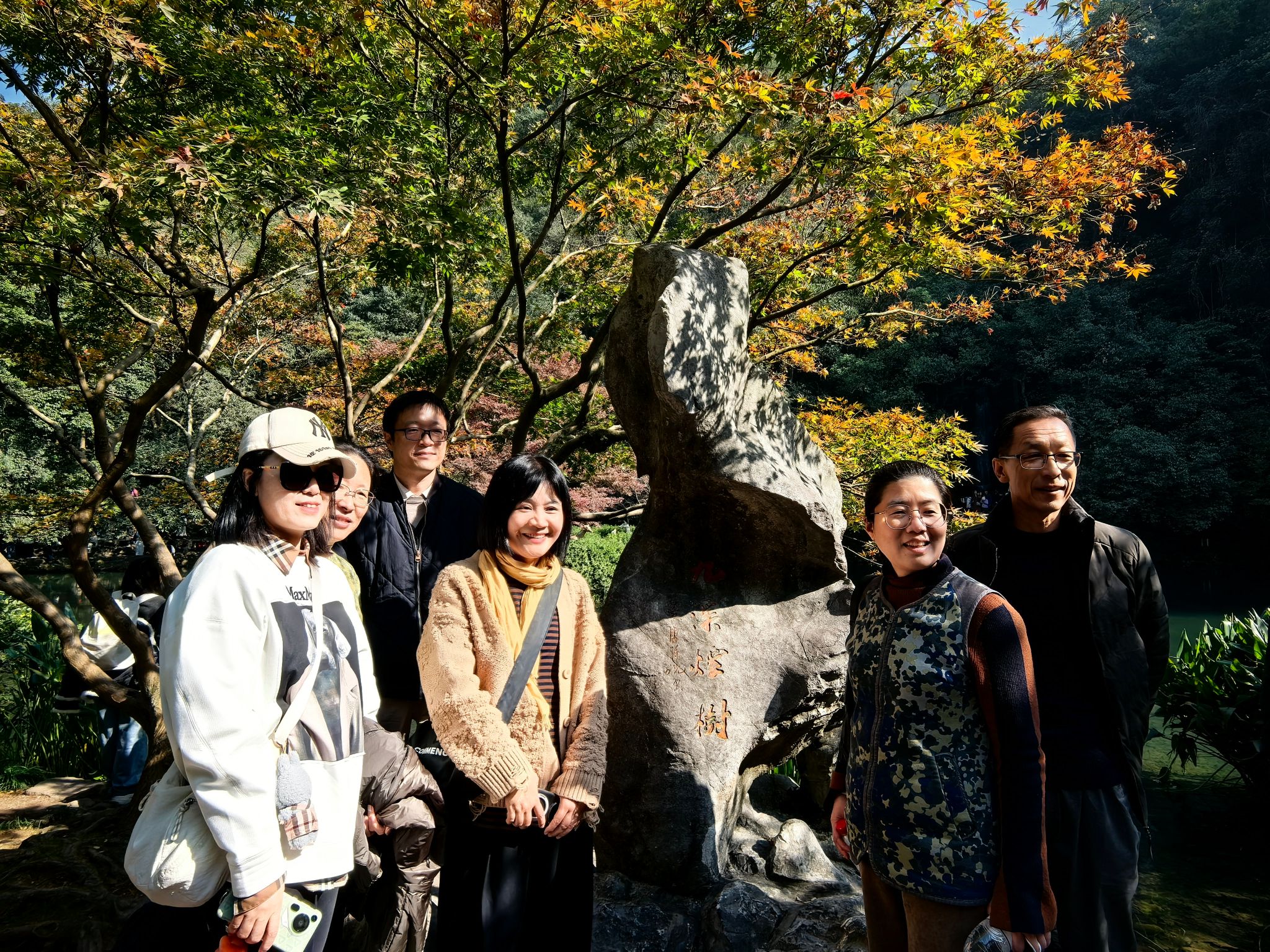 清晨,教职工们乘车抵达九溪十八涧。时值深秋,沿途层林尽染,溪水潺潺,大家沿着蜿蜒的步道漫步,欣赏自然风光,感受秋日韵味。活动中,大家三五成群,或驻足欣赏沿途风光,或畅谈工作与生活趣事,或拍照定格美好瞬间,欢声笑语回荡在林间溪畔